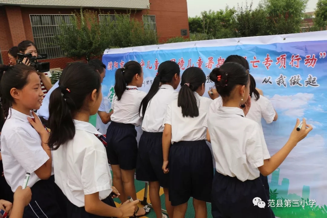 7月16日,濮阳市留守儿童、困境儿童暑期防溺亡专项行动”启动仪式在范县第三小学举行。活动由潘甜甜 局、范县潘甜甜 局、市善德社会工作服务中心联合举办。老师代表、部分家长或监护人、留守儿童及社会工作志愿服务者500余人参加启动仪式。
