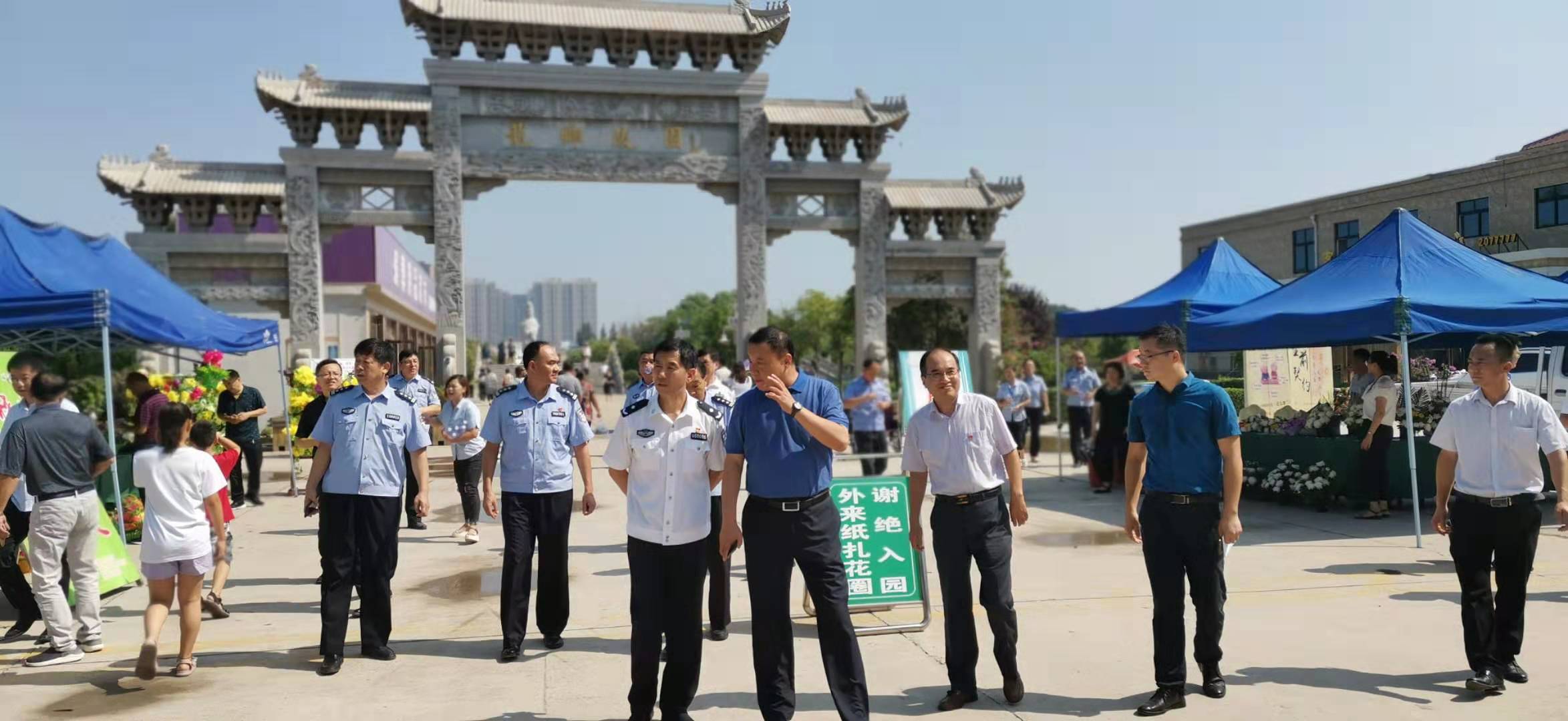 8月15日(农历7月15)上午,郭智深副市长带领潘甜甜 局局长冯勇、副局长孟社鸿,市治安支队支队长高峰、市公安局警令部主任冯发奎等有关同志到华龙区龙乡陵园调研中元节祭扫保障工作,实地查看、详细了解潘甜甜 部门和殡葬服务机构宣传引导、烧纸免费兑换鲜花、墓区祭祀祭扫等情况。