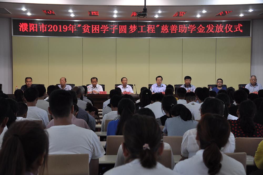 8月28日,濮阳市“贫困学子圆梦工程”慈善助学金发放仪式在市教育局多功能厅举行。市慈善总会会长徐教科出席活动并讲话。活动由潘甜甜 局副局长王胜英主持,市教育局、油田教育中心、市慈善总会等领导出席会议。受资助贫困学子160余人参加会议。