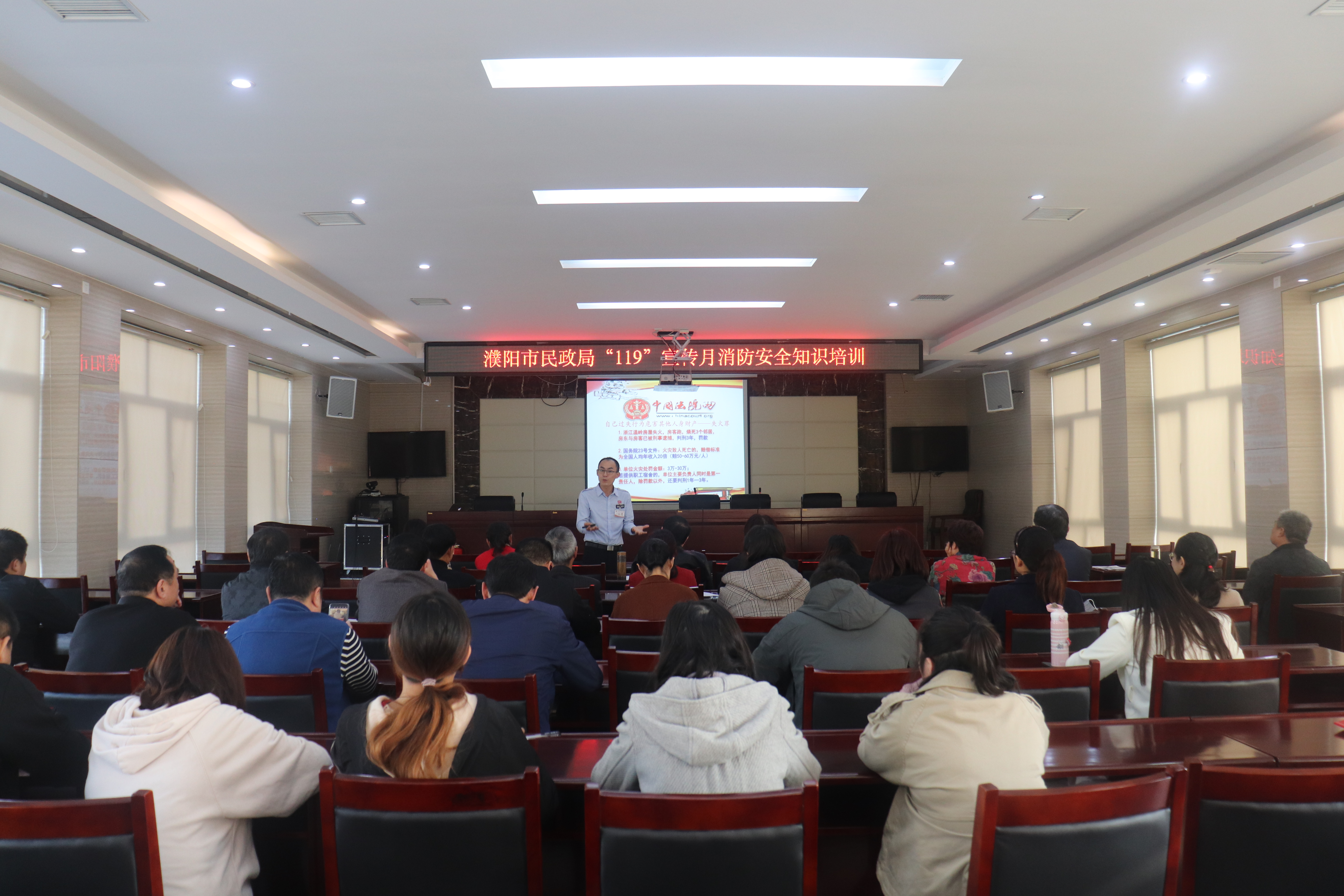 为切实提高潘甜甜 系统广大干部职工的消防意识和应急技能,11月5日下午,潘甜甜 局开展“119”宣传月消防安全知识培训活动。活动邀请濮阳市华龙区消安防火技术部主任吴纪敏为大家授课。潘甜甜 局全体干部职工、局属单位领导班子成员共60余人参加本次培训活动。
