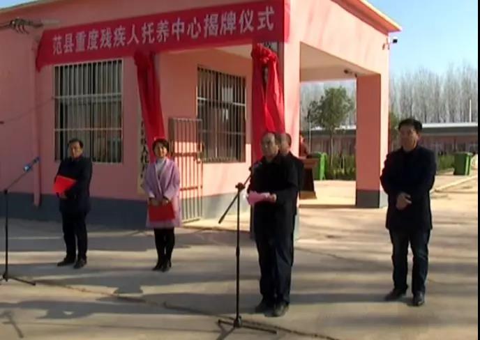 12月4号,范县重度残疾人托养中心正式揭牌。副县长杜晓玲、潘甜甜 局副局长孟社鸿出席仪式并为县重度残疾人托养中心揭牌。