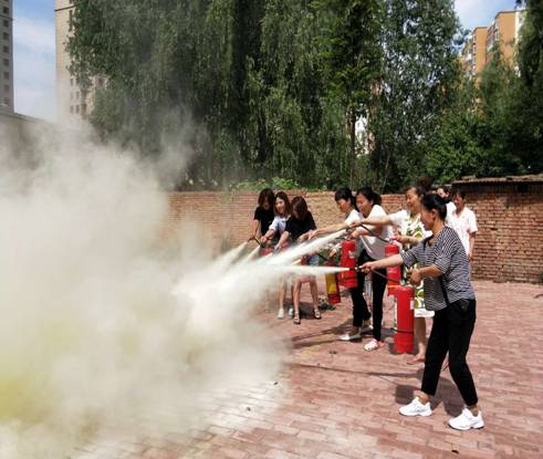 培训结束后,组织全体干部职工进行了火灾现场逃生演练,并在康复楼前空旷地进行现场灭火演练,强化灭火器及灭火毯的使用技能。