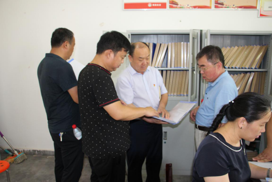帮扶干部在村室详细翻阅贫困户档案资料,对其档案整理和保管模式进行学习借鉴。